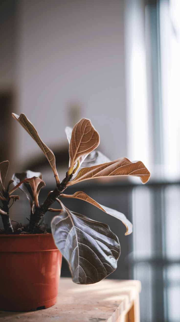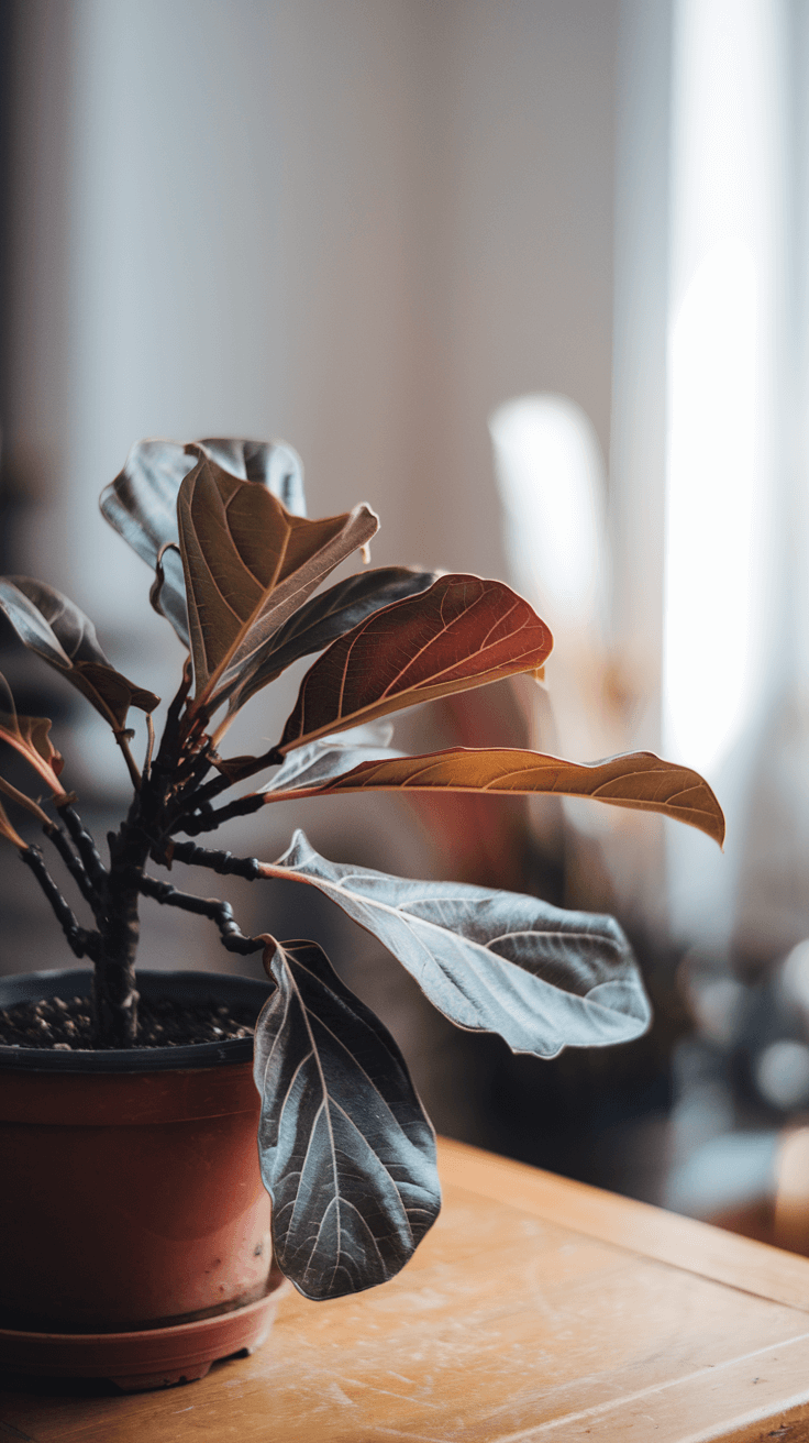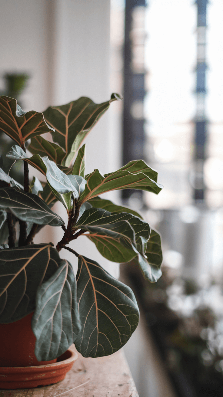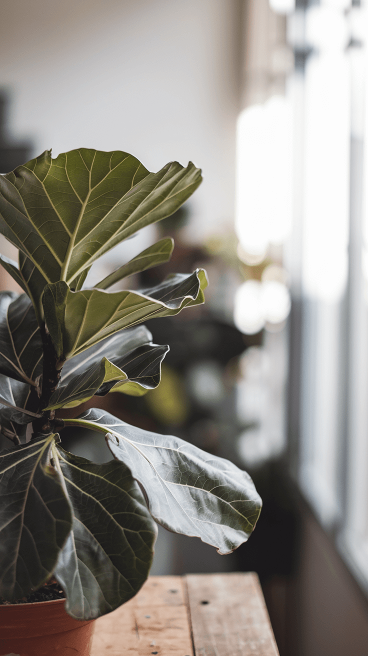 Fiddle leaf figs originate from humid West African rainforests where ambient humidity hovers around 60-75%. When indoor humidity drops below 30%, especially during winter heating season, leaves lose moisture faster than roots can replace it, causing drooping and curling.