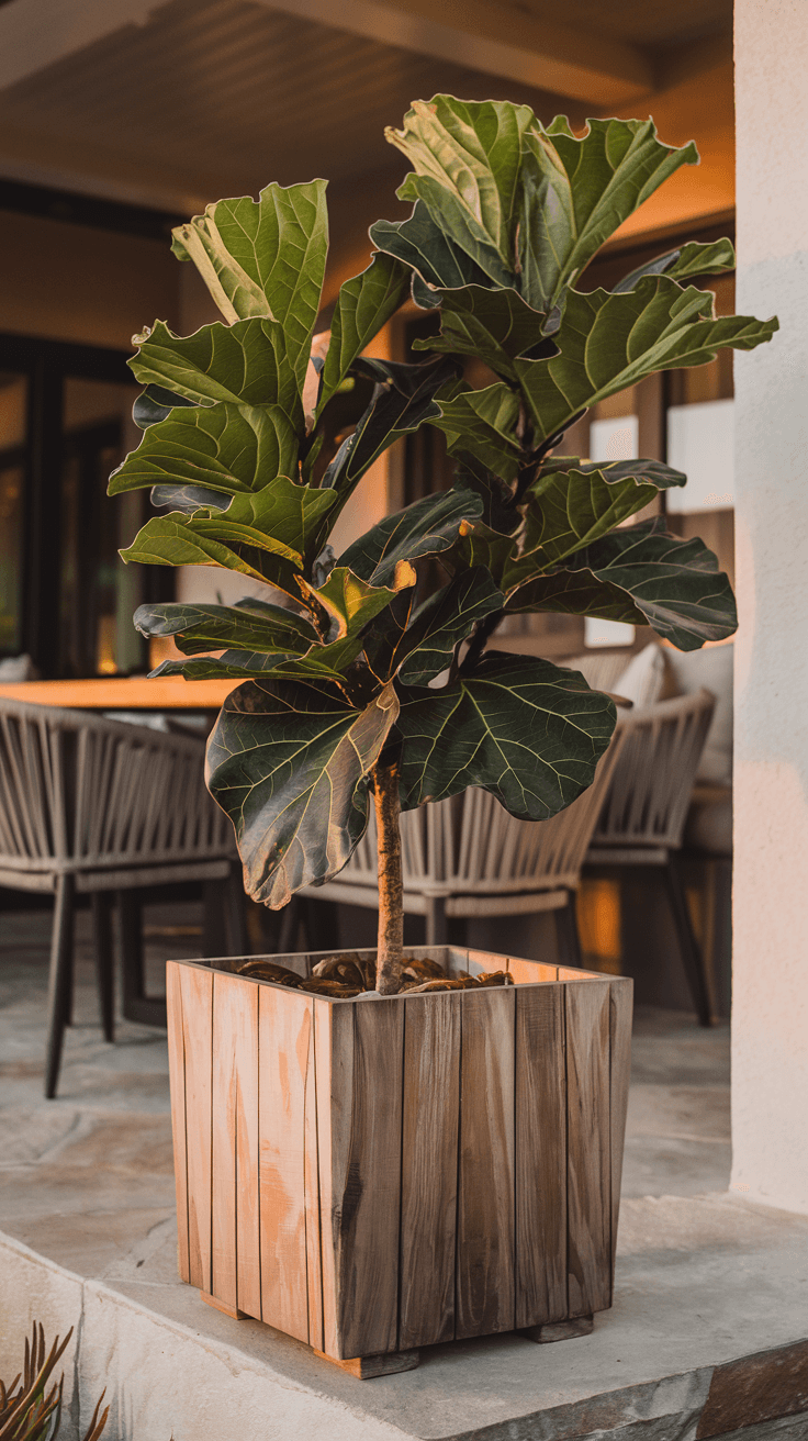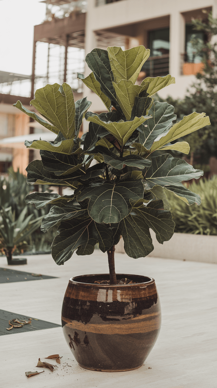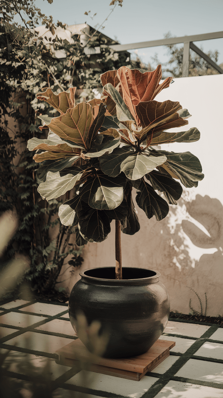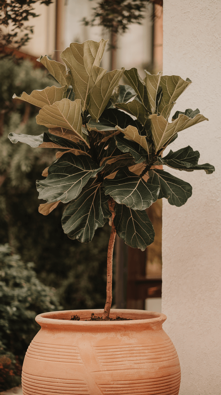 Wind protection is critical and often overlooked. Those large fiddle leaves act as sails, catching wind that can physically damage the plant by tearing leaves, breaking branches, or even toppling the entire pot.
