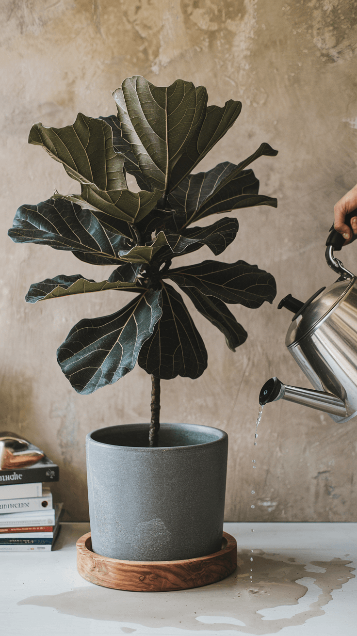 Always water until runoff appears, confirming complete saturation. I’ve salvaged struggling fiddles simply by teaching owners to water thoroughly instead of lightly spritzing the surface.