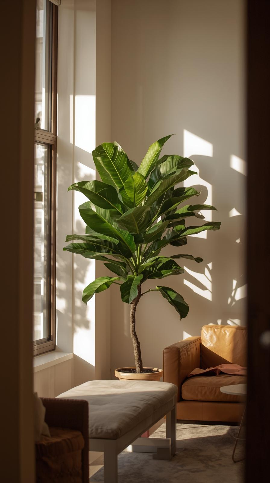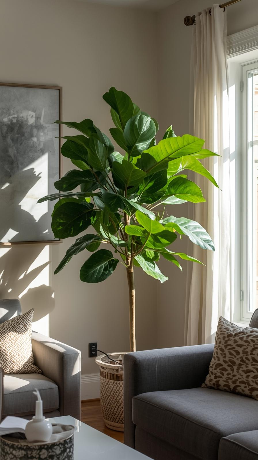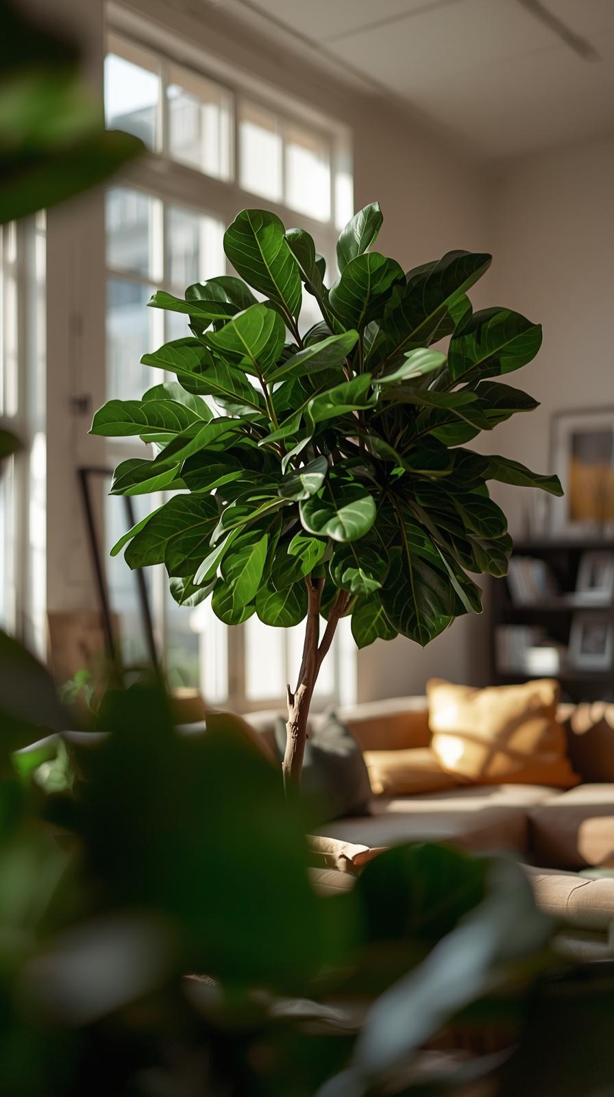 Fiddle leaf figs need consistent, multi-directional lighting to promote balanced, bushy development.