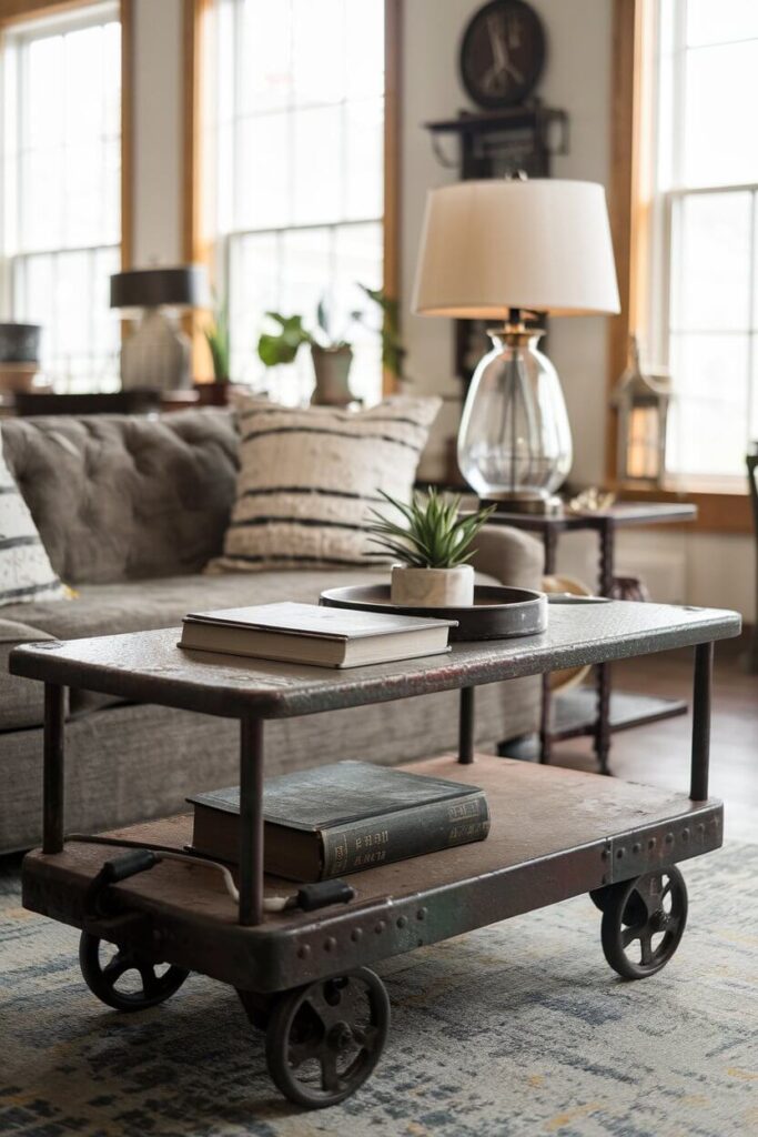 Factory carts become coffee tables, old workbenches transform into kitchen islands, and vintage lockers store everyday items. These pieces bring authentic history and substantial construction quality often missing from contemporary furniture.