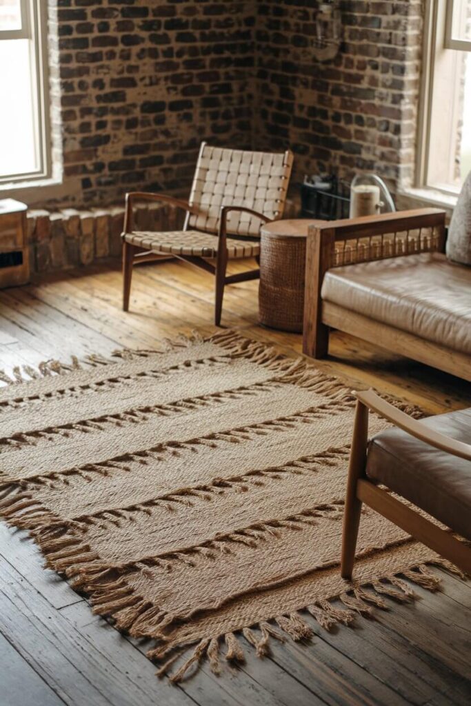 Jute, sisal, wool, and hemp rugs introduce earthy textures that complement rustic aesthetics. Their natural color variations and slightly irregular weaves add visual interest while defining seating areas and softening hard flooring.