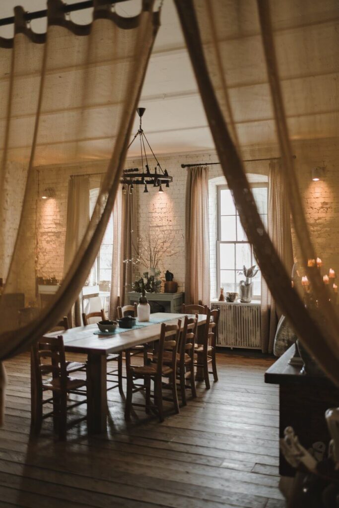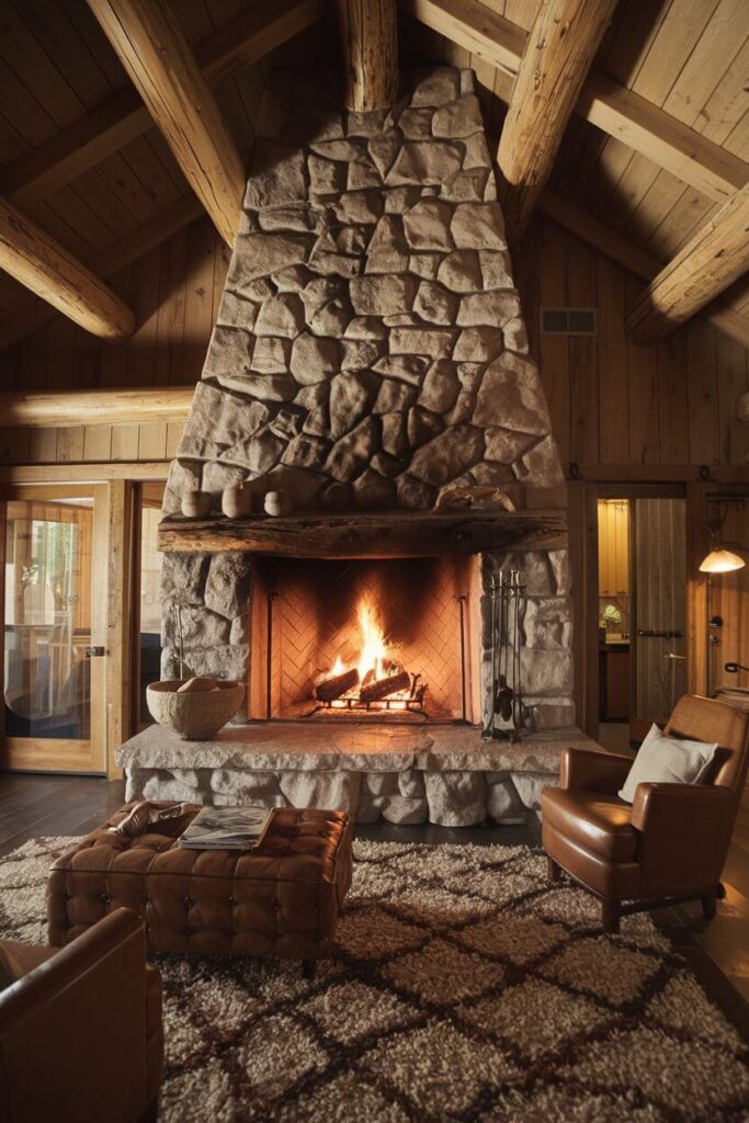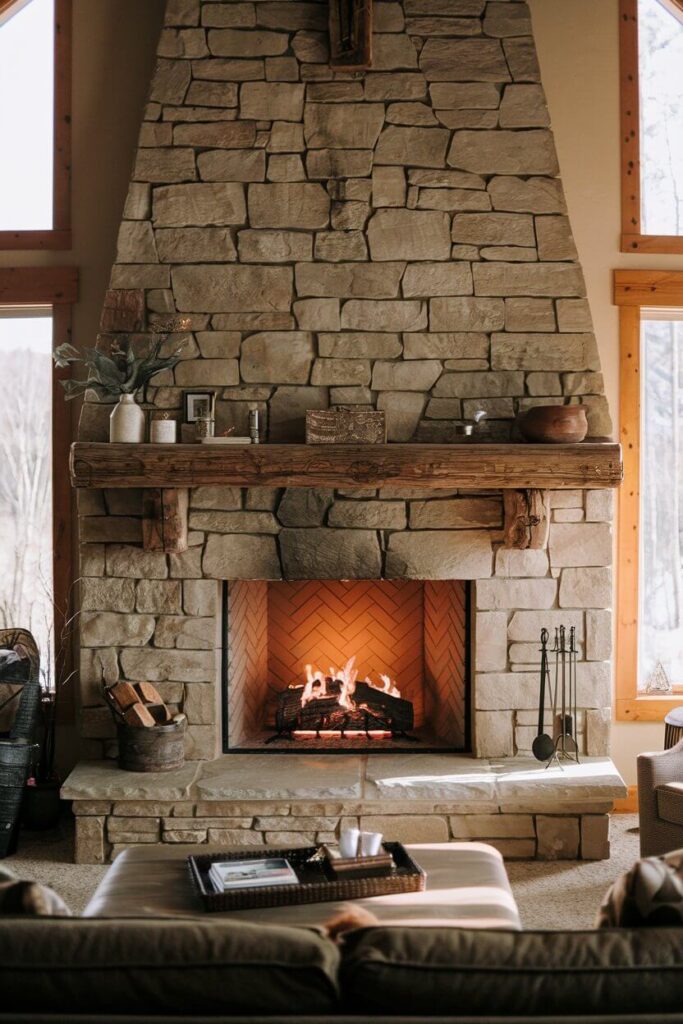 Nothing creates rustic atmosphere like real flame. Whether it’s a traditional fireplace, modern wood stove, or even a tabletop fire bowl, the dancing light and gentle warmth transform any gathering space.