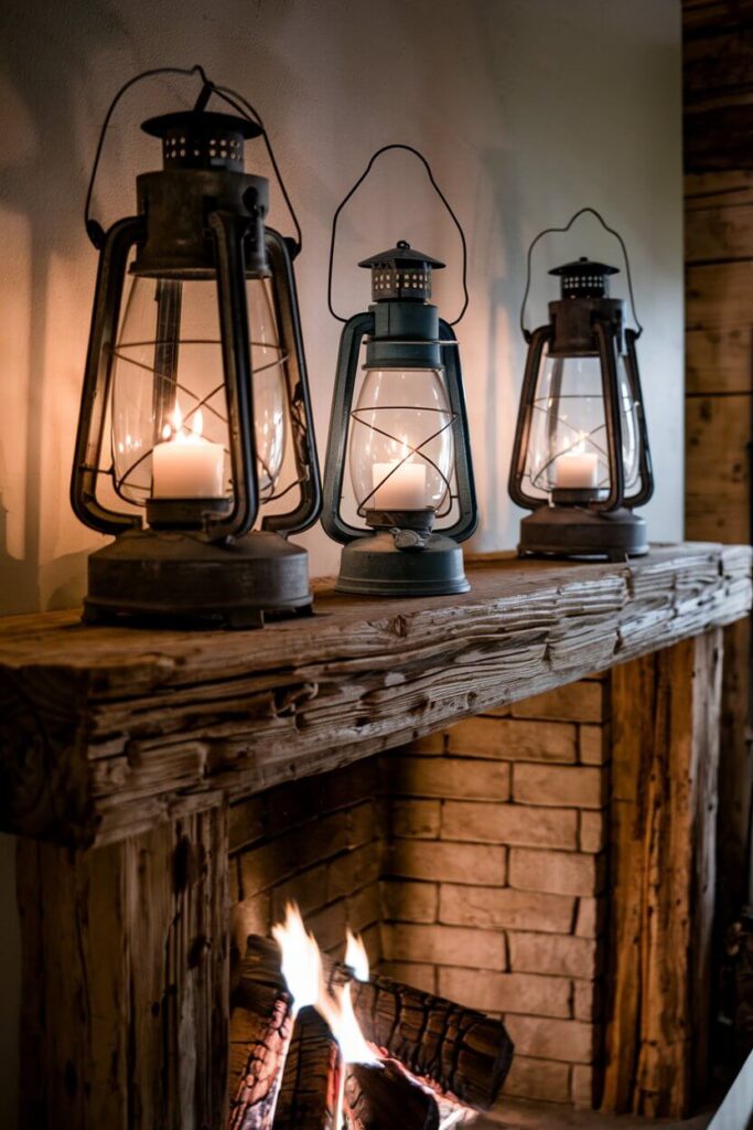 Whether authentic antiques or quality reproductions, lanterns bring outdoor adventure feeling indoors. Hurricane lanterns with pillar candles, electric versions for safety, or scaled-up versions as statement pieces all work effectively.