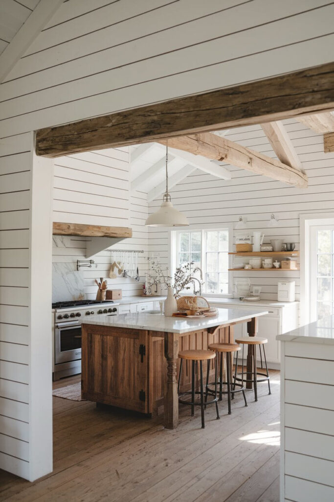 Made famous by farmhouse design but rooted in practical construction, shiplap adds horizontal lines that visually expand spaces while introducing subtle texture. The small shadow lines between boards create depth without overwhelming smaller rooms.