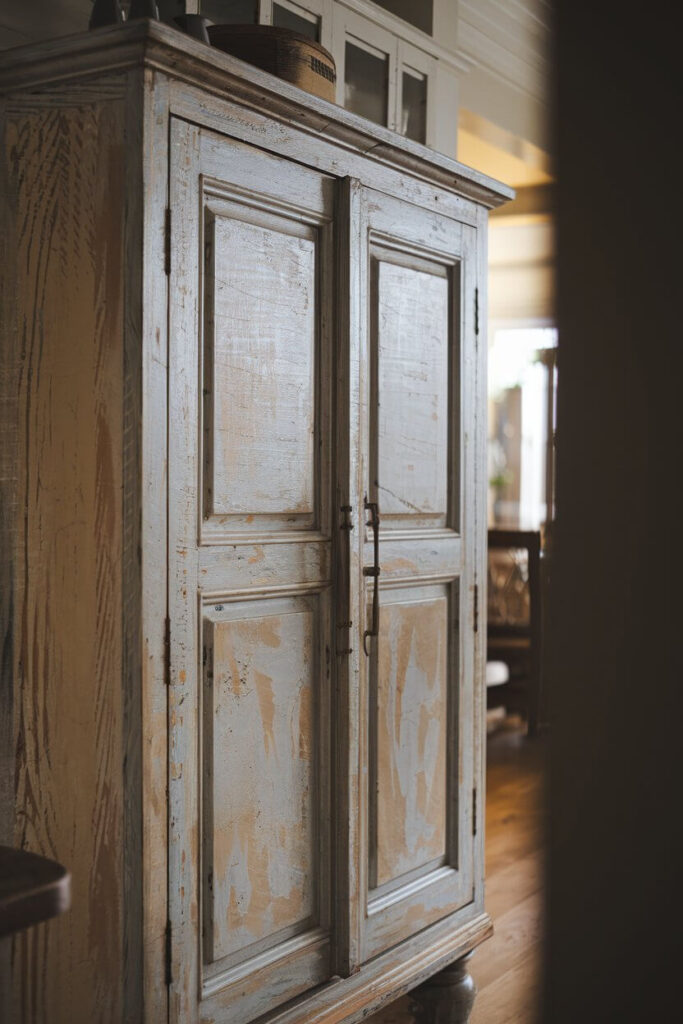 Farmhouse-style cabinets, weathered dressers, and rustic bookcases serve dual purposes: providing necessary storage while contributing visual weight and texture. Pieces showing honest wear marks and faded paint tell stories while organizing your belongings.